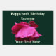 A red rose with lingering raindrops customizable birthday sign. Replace your information in the templates. Or you can click on Customize to change font size, style, and color, and to add text and change text. This design is available on many cards and gifts in my store. Please visit Smilin' Eyes Treasures to see more flower, animal, nature, and digital art design cards and gifts for home and office.