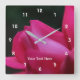 Red Rosebud And Raindrops Nature Personalized Square Wall Clock