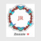 Red Roses and Blue Butterflies Monogram Wreath Sticker