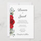 Design features a side bouquet of red flowers and eucalyptus. The design is minimal, yet elegant and classy.