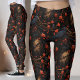 Gothic floral leggings, red roses ravens, alternative mystical pattern, unique gothic style, dark allure fashion, intricate rose design, alternative wardrobe choice, gothic side expression, captivating mystical leggings, customized alternative fashion.