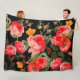 RED ROSES AND YELLOW BUTTERFLIES Black Floral Fleece Blanket
