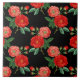 Red Roses, Black Background, Ceramic Tile