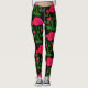 Custom Colors - Red Roses on Black Leggings - or Choose / add your favorite leggings color with Customization tool ! MIGNED Design