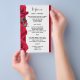Affordable wedding menu template with red roses design. Printed on flyer paper, the design is pretty and is perfect for couples on a budget. Three, realistic red roses decorate the left side of 5x8 inch paper. Customize with a list of menu items using the paragraph provided. Add spaces where needed, and use the design tool to further customize the menu. They come in increments of 25 and have a solid red color on the back.