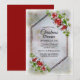 Plain white envelopes are included with paper invitations and will come to fit the invitation size you select. If you don’t need the envelopes, you may choose to not receive them by selecting the dropdown below "Envelopes" and choosing "None." If you’d like to have a design on your envelopes, you can browse all of these available envelopes to find the design that complements your Red Roses Christmas Dinner Invitation.