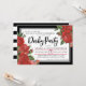 Classic and classy, these invitations are perfect for your Derby Day party. Sprays of bright red roses grace two corners of the front design, accented by an elegant black border. All text is customizable using the easy, provided template. You can choose to delete the 'Derby Party' artwork and replace this line with your own text, if desired! The back side features a black and white stripe pattern and has room for more text - share event details here or delete the text boxes if no wording is desired.