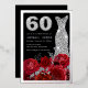 Red Roses Diamond Dress 60th Birthday Silver Foil Invitation