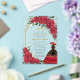 Personalize this lovely red floral black and red charro dress quinceañera acrylic invitation easily and quickly. Simply click the "Edit Using Design Tool" button to modify the text, wording, font style, font size, and font color. You can also add or remove text, and move or remove images. The girl, sombrero hat and crown are movable, resizable, duplicatable, and removable, allowing you to customize the design to suit your occasion. For a seamless and coordinated look, explore our range of matching items available in-store. (c) The Happy Cat Studio