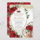 Red Roses Floral Charro Boots Sweet 16 Quinceañera Invitation