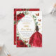 Red Roses Floral Dress Quinceañera Dama Request Invitation