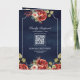 Red Roses Floral Frame Navy Blue QR Code Wedding Invitation