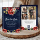 Red Roses Floral Photo QR Code Navy Blue Wedding Save The Date