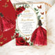 Red Roses Floral Princess Dress Gold Quinceañera Invitation