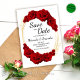 Red Roses Gold Frame Floral Wedding Save The Date Invitation