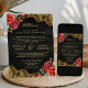 Red Roses Gold Lace QR Code Black Muslim Wedding Invitation