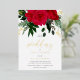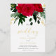 Red Roses & Green Leaf Wedding Gold Foil Invitation