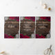 Red Roses & Lace Elegant Rustic Wood Wedding Tri-Fold Invitation