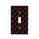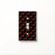 This lovely light switch cover features a repeating abstract pattern of a single red rose with green leaves set on a pure black background.