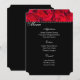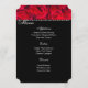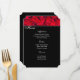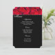 Menu Card is in black with a photo print of red roses and a delicate pin dot border trim with script and standard text in white.