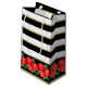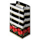 Features a lovely red rose border, and a horizontal stripe pattern in black, white and gold.
