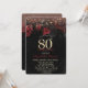 Red Roses,String Lights Glitter 80th Birthday Invitation