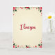 This design shows a vertical card with a soft creamy yellow background that gets a little lighter toward the center. In the middle, the words “I love you” stand out in deep red, written in smooth flowing letters. Around the edges, there’s a frame of flowers and leaves that wraps the message like a hug. Each corner has a large rose, with petals in light pink and deep red, and the flowers look full and open. Green leaves and curling vines connect the roses, with small red blossoms tucked in between. Tiny red hearts are sprinkled among the leaves, adding a sweet romantic touch 💕❤️. It’s a simple, warm design that feels perfect for love or close friendship, so go ahead and share a little extra affection this Valentine’s Day.