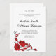 Plain white envelopes are included with paper invitations and will come to fit the invitation size you select. If you don’t need the envelopes, you may choose to not receive them by selecting the dropdown below "Envelopes" and choosing "None." If you’d like to have a design on your envelopes, you can browse all of these available envelopes to find the design that complements your Red Roses Wedding Invitation Floral Invitation.
