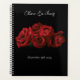 A timeless design featuring elegant white lettering and vibrant red roses set against a classic black backdrop.