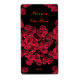 Easily customize the text on this lovely rose wine bottle label which is decorated with a repeating abstract pattern of red roses on a pure black background.
