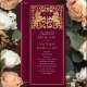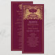 Unveil the magic of your big day! These medieval fantasy wedding programs feature a regal lion surrounded by intricate gold florals and a monogram against a red background, blending elegance with a touch of grandeur. A perfect keepsake for your fairytale celebration! The gold featured on this item is NOT real foil and is printed in flat colors.