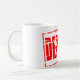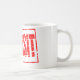 Red rubber stamp effect deposit coffee mug