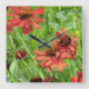 RED RUDBECKIA FLOWERS SQUARE WALL CLOCK