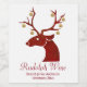 Whimsical but still elegant enough for your homemade wine. It features a white background with a Rudolph silhouette done in red. Gold ornaments hang from his antlers. The bottom has customizable red text.