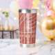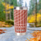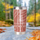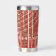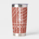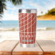 Take your favorite beverage to the track with this personalized travel tumbler. It features an all over illustration of a running track in a distressed style in red with white lane lines. This travel mug is ready to be personalized with a name in bold white lettering. Makes a great gift for track and field runners and track coaches.