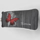 Create a unique golf gift with a Red Rustic Butterfly Personalized Golf Head Cover. Cover design features a butterfly against a white leaf vine and dark gray wooden background with a place to personalize with your name. Additional items available with this design as well. Please contact me directly for assistance with personalization.