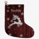 Add a whimsical touch to your mantle this holiday season with a personalized Red Rustic Christmas Reindeer Stocking. Stocking design features a red rustic wooden background with a Christmas reindeer adorned with falling snowflakes. Additional gift and holiday items available with this design as well.