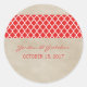 Elegant and sophisticated Rustic Quatrefoil Wedding Stickers featuring a vintage textured look background and a modern pattern border in red. Easy to customize, simply add your wedding details. Click "Customize It" to find more personalization options.