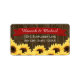 A SUNFLOWER RETURN ADDRESS LABEL WITH COUNTRY CHARM AND A RUSTIC FEEL WITH A WOOD GRAIN WOODEN FENCE OR BARREL LOOK DESIGN AND A NAIL HEAD TRIM. ADD THE NAMES OF THE BRIDE AND GROOM ON THE RED PRINTED RIBBON LOOK BANNER. A BOUQUET OF GOLDEN YELLOW SUNFLOWERS HAVE A VINTAGE AND PAINTERLY FEEL AND LOOK. PERFECT FOR A WEDDING ANNIVERSARY ENGAGEMENT BIRTHDAY OR ANY SPECIAL OCCASION PARTY WITH A BARNYARD BARN OR FARMHOUSE THEME. DESIGN © CHRISSY H. STUDIOS, LLC. ALL RIGHTS RESERVED.