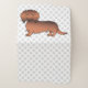 Destei's original cartoon illustration of a cute long hair red sable coat color Dachshund breed dog. Each file folder has a slightly different design variation of the dog illustration.
