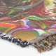 A quality printed throw has its advantages. This is a much finer weave throw than its loopier cousins, and though lighter, it is worth the investment for custom room accessorizing. The back is much prettier than the typical brown, and the fringe on the long sides very vivid, the selvage nicely done. Before photographing, I washed the throw in cold water, delicate, with a thicker woven throw the same size. On tumble dry low, this throw was dry in half the time as the other. This is a very practical quality if you use throws for furniture covers or to wrap up in frequently. The sleekness of the fabric makes it a great layer for accenting or protecting without the feeling of sitting on too much stuff. Perfect for napping or when you feel a light chill coming on. The color printing is beautiful and on this fabric, matched the design and color of my Photoshop image. This is an advantage for blending room fabrics and colors. The fringe on the short sides prints the colors from the design image and therefore varies from the side fringe. I streaked a white fractal line through the plaid pattern to give the illusion of weaving. This printed as crisp as an illusory thread, and put some white in the short side fringe, showing another advantage of print vs loomed- for artistic purposes, line lines, detail, and color integrity can be planned and preserved. My loomed throws have color limitations and more of a needlepoint texture. Print throws reproduce an exact image. The throw felt a little stiff straight out of the package, but this went away in the first delicate wash. Of course I searched the wash water for ink or bleeding and there was none.
