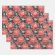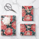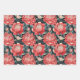 Red & Sage Peony Flowers Wrapping Sheets Set of 3