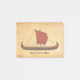 A Viking long ship with a red sail seen in profile from the right side and superimposed on an old paper background image. Customize by adding your own text.