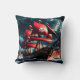 Red-Sailed Pirate Ship Navigating Stormy Seas Throw Pillow
