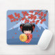 Red Sakura Kokeshi Doll - Cute Geisha Girl Mouse Pad