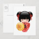Red Sakura Kokeshi Doll - Cute Geisha Postcard