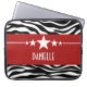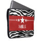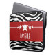 Trendy and modern Sassy Star Zebra Laptop Sleeve featuring a chic black and white zebra print background and a bold red border adorned with a fun star motif. This sleeve is perfect for protecting your gadget with style! This girly design may be customized with the personalized text of your choosing. Click "Customize It" to find more personalization options.
