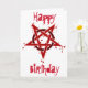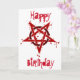 A red inverted pentagram dripping red spots. Card reads: Happy birthday.