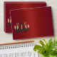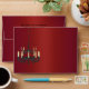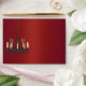 Red satin envelope with a black wrought iron chandelier complete with lit candles. Return address is on back flap. Chandelier can be moved, resized, and copied to the back or inside.