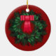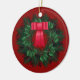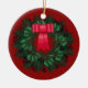 Red Satin Bow Berries Wreath Christmas Ceramic Ornament